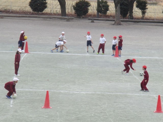 2/24 体育の授業 公開日 2026/02/24 更新日 2026/02/24 できごと 2月24日(火)、3連休明けでしたが、1年生は元気に体育でサッカーに取り組んでいました。 少しずつボールを蹴って、楽しく運べるようになってきました。