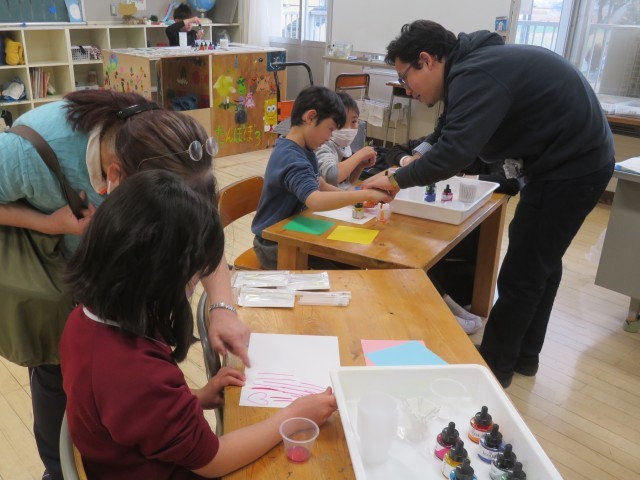 2/25 図工の授業(2) 公開日 2026/02/26 更新日 2026/02/26 できごと 2月25日(水)、たんぽぽ学級では、足利短期大学の茂木克浩先生にお越しいただき、図工の授業をしていただきました。 子どもたちは、ワクワクが止まりませんでした。世界に一つだけの「色」を作って、ペンを完成させました。