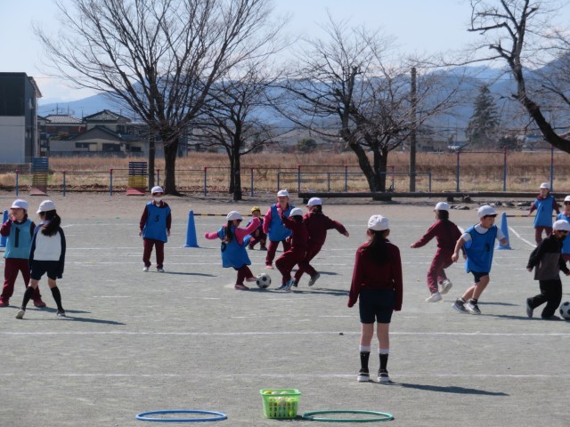 3/12 体育の授業 公開日 2026/03/12 更新日 2026/03/12 できごと 3月12日(木)、2年生は、体育で「ボールけりゲーム」にチャレンジしていました。 チームで役割を決めて、ボールを蹴りながらゴールに運んでいました。