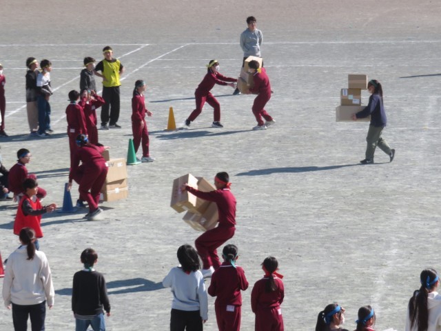 3/12 合同運動会(3) 公開日 2026/03/12 更新日 2026/03/12 できごと 写真は、「宅配リレー」の様子です。 合同運動会をとおして、6年生から5年生へと、確実に「バトン」が渡されていっていることが感じられました。