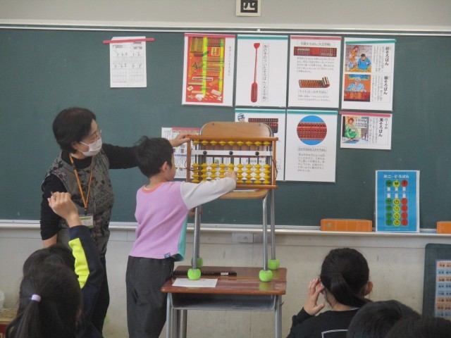 3/17 そろばん教室(1) 公開日 2026/03/17 更新日 2026/03/17 できごと 3月17日(火)、3年生は、算数の授業で「そろばん」にチャレンジしました。 群馬県珠算連盟の講師にお越しいただき、そろばんについて、丁寧に教えていただきました。
