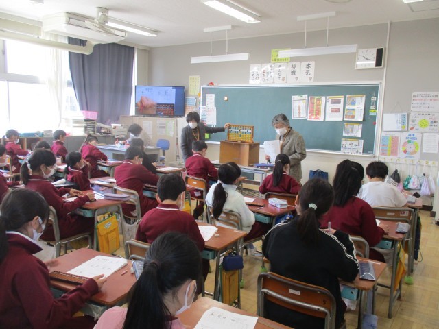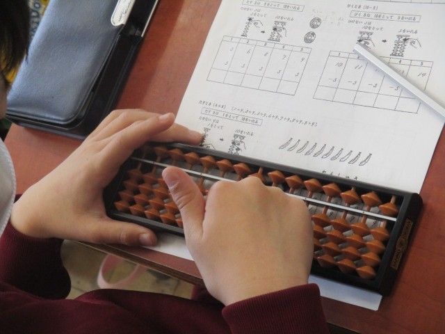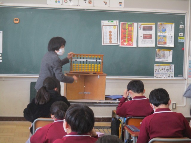 3年生は、初めての「そろばん」に集中して取り組んでいました。