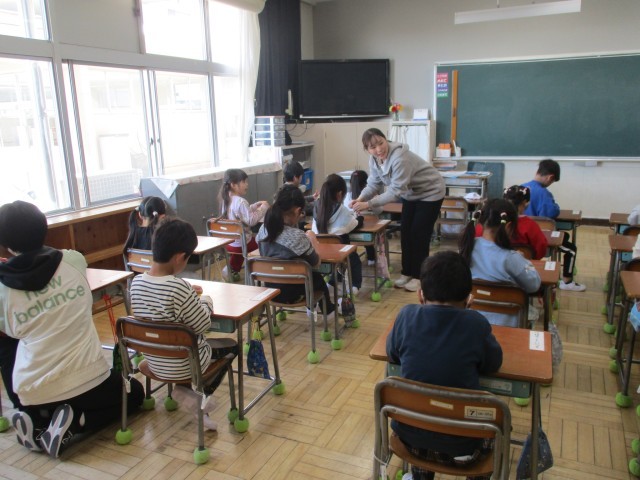 1年生は何でも一人でできるように頑張っています。名札を自分でつける練習もしました。担任の先生のお話をしっかり聞いて、安全に気を付けながら頑張りました。廊下の歩き方も学びました。右側を音を立てず忍者のように歩いていました。