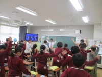 4年生は50m走の測定をしていました。久しぶりにタイムをはかるので、少し緊張している子もいました。「がんばれ!」自然と応援する声が子どもたちから出てきました。最後まで走り抜く姿が印象的でした。