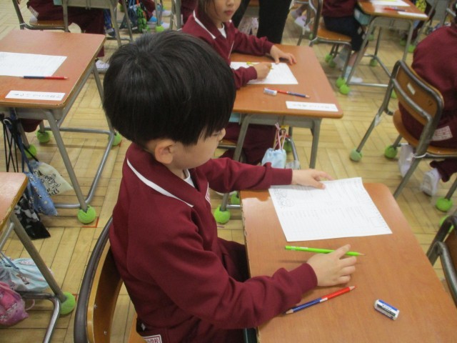 今朝は、学習用具調べから始まりました。学習や生活に必要なものがきちんとそろっているか、クラスごとに確認しました。1年生のクラスは、まだ使っていないものでも、これからの学習で必要なものが入っているかみんなで確認しました。「○○あります。」元気な声が響いていました。ハンカチもきちんとポケットに入っていて感心です。