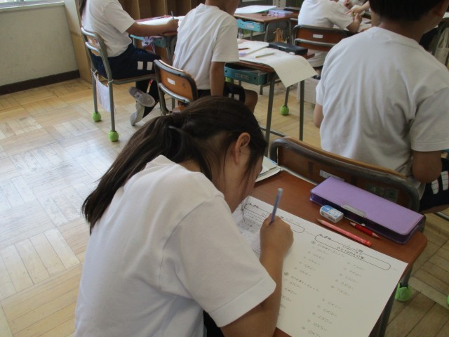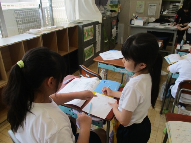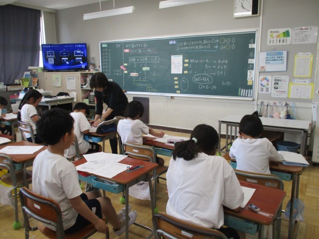 3年生は、0のかけ算について考える学習をしていました。「どんな数に0をかけても答えは0」「0にどんな数をかけても答えは0」になることを理解をして、プリント問題にチャレンジしていました。友達と確認をして理解を深めている姿もあり、感心しました。