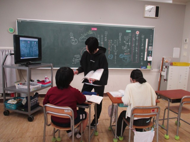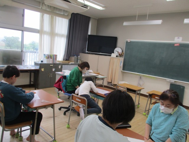 登場人物の言葉と行動に着目して、心の動きを考える学習をしていました。教科書の文章をよく読んで心の変化を考えていました。他のクラスの子も集中して取り組んでいました。