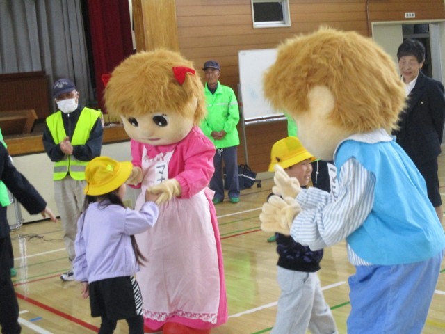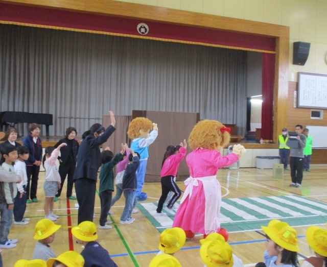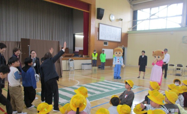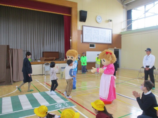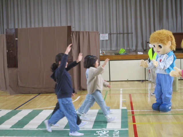 紙芝居の後は、模擬道路を使って歩き方を学びました。「マモルくん」と「マナー」ちゃんと一緒に、「手を挙げて 右 左 もう一度 右」を見て横断歩道を渡る練習をしました。交通安全教室が終わると、1、2年生から「楽しかった!」と、声が上がりました。楽しみながら「命の大切さ」や「自分の命を守る方法」をしっかりと学びました。藤岡警察署の方、交通安全協会の皆様、本日はありがとうございました。また、保護者の方、地域の皆様、いつも見守りありがとうございます。