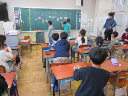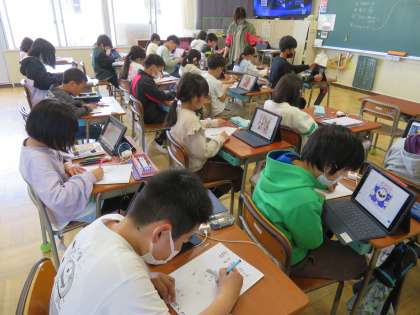 4年生は、学級活動で係活動を決めたり、タブレットを使った音読カードづくりをしたりしていました。