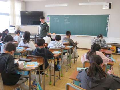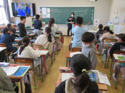 4/10 授業の様子(3) 公開日 2024/04/10 更新日 2024/04/10 できごと 5年生は、新しい目標や係などを決めて、動き出しています。 国語の授業では、「聞く、話す、書く、読む」について、1年間の見通しをもてるゆにしていました。また、社会の授業では、資料から読み取ったことを発表し合っていました。
