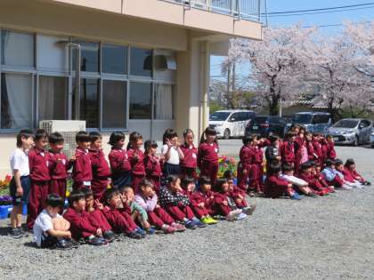 1年生は、天気がよかったので、教室の前の花壇で集合写真を撮っていました。