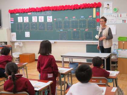1年生は、算数「すうじをよもう、かこう」の学習に取り組んでいました。