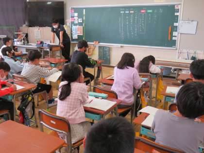 4/18 国語の授業 公開日 2024/04/18 更新日 2024/04/18 できごと 3年生は「春風をたどって」の学習で、場面ごとに登場人物を本文を手がかりにして話し合っていました。 4年生は「白いぼうし」の学習で、本文の言葉を手がかりに、この時間の課題について自分の考えを発表していました。 6年生は「帰り道」の学習で、本文を手がかりに、二人の登場人物の心情を対比しながら読み取っていました。