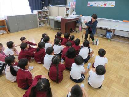 写真は、1年生の読み聞かせの様子です。