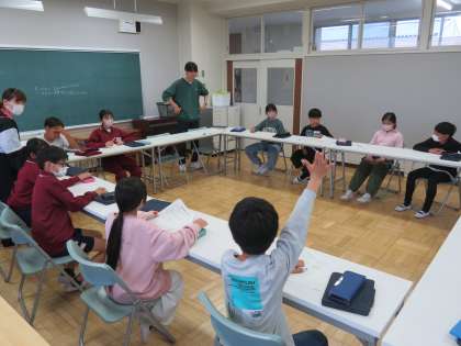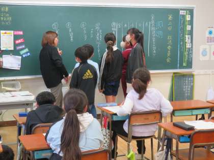 5/13 専門委員会(1) 公開日 2024/05/14 更新日 2024/05/14 できごと 5月13日(月)に2回目の専門委員会が行われました。 代表委員会は、人権集中学習について話し合っていました。(写真上) 放送委員会は、お昼の放送のプログラムについて話し合っていました。(写真中) 環境委員会は、校舎内のポスター掲示を行っていました。(写真下)