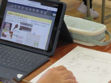 自分たちで、興味や関心をもったことをタブレットや本を使って調べていました。