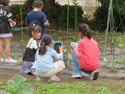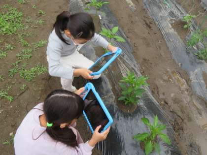 5/22 野菜の観察(1) 公開日 2024/05/22 更新日 2024/05/22 できごと 2年生は、国語「かんさつ名人になろう」で、自分たちが植えて育てている野菜の観察をしていました。 気づいたことをメモをする学習です。この時もタブレットが大活躍でした。