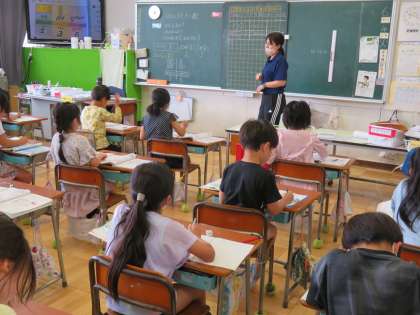 2年生は、算数「100より大きい数」で、10のまとまり、100のまとまりで数えていく学習に取り組んでいました。