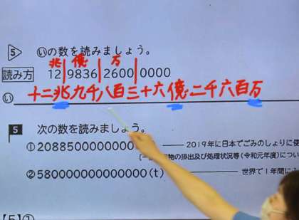 4年生は、算数で「1000億より大きい数」について、学習していました。