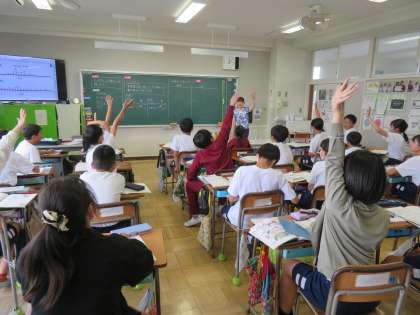 6年生は、算数「ドットプロットの特徴を調べよう」の学習に取り組んでいました。