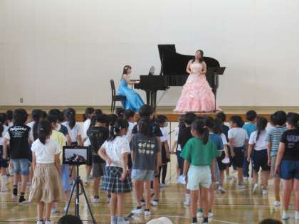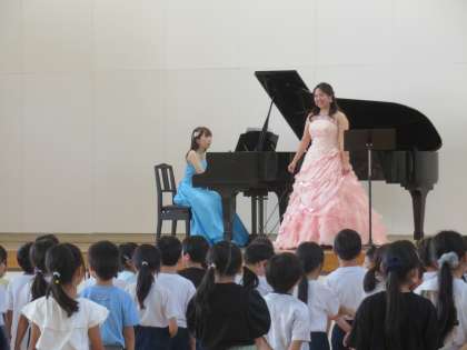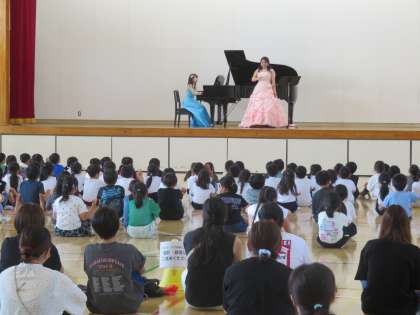 本校卒業生のソプラノ歌手の『浅見聖怜奈さん』、ピアニストの『後藤香音さん』にお越しいただき後輩たちに「歌の素晴らしさ」「音楽の素晴らしさ」をプレゼントしていただきました。