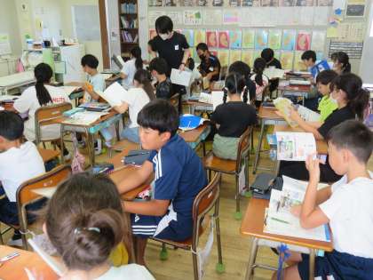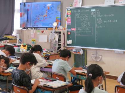 9/2 授業の様子(4) 公開日 2024/09/02 更新日 2024/09/02 できごと 5年生は、社会「水産業のさかんな地域」の学習で、資料から考えられることをノートにまとめ、友達と共有していました。