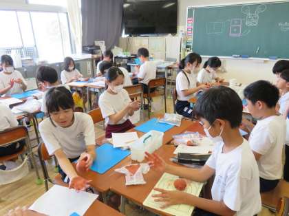 9/5 授業の様子(2) 公開日 2024/09/05 更新日 2024/09/05 できごと 5年生は、算数「整数の性質」で、「長方形を並べて正方形にするにはどうしたらよいか」を考えることで、「最小公倍数」を見つけていきました。 また、図工では、思い思いの守り神を粘土で形作っていました。