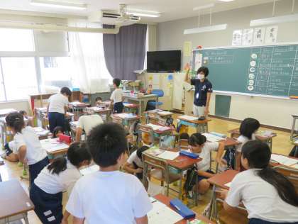 9/10 授業の様子(2) 公開日 2024/09/11 更新日 2024/09/11 できごと 3年生は、理科「虫のすみか」で、草むらにいる虫になったつもりで、虫が何をして草むらで過ごしているのか考えていました。