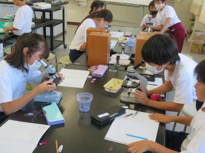 9/13 授業の様子(3) 公開日 2024/09/13 更新日 2024/09/13 できごと 5年生は、顕微鏡を使って「花粉はどんな形をしているのか」を調べていました。 日々草とキクイモの花粉を調べて、その違いに驚いていました。