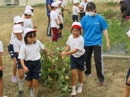 10/16 サツマイモ掘り 公開日 2024/10/17 更新日 2024/10/17 できごと 10月16日(水)、2年生は生活科で苗から育てたサツマイモを収穫しました。 つるの片付けをした後、みんなでていねいに掘りました。サツマイモを見つけると大きな歓声があがりました。