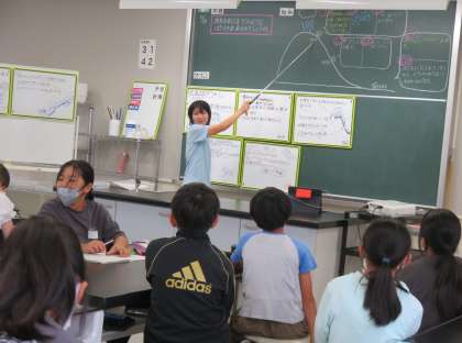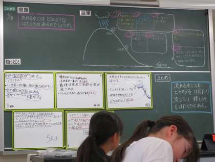 10/18 授業の様子(2) 公開日 2024/10/18 更新日 2024/10/18 できごと 5年生は、理科「流れる水のはたらき」で、昨日の実験をまとめていました。 班ごとに結果をホワイトボードにまとめて、発表していました。