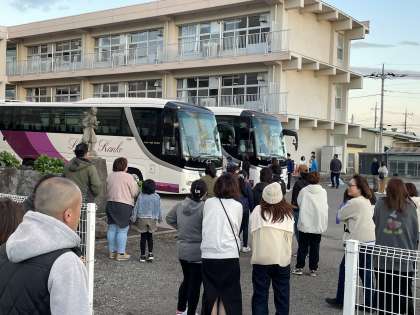 10/20 修学旅行(1) 公開日 2024/10/20 更新日 2024/10/20 できごと 10月20日(日)6:00、6年生は鎌倉方面へ修学旅行に出発しました。 仲間と一緒にたくさんの思い出を作ってほしいと思います。 朝早くから保護者の皆様に見送っていただきました。 ありがとうございました。