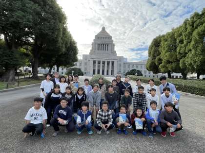 10/21 修学旅行2日目(8) 公開日 2024/10/21 更新日 2024/10/21 できごと 修学旅行の最後の集合写真です。 全員、元気です。 15:10 バスは藤岡に向け、国会議事堂を出発しました。 仲間とのたくさんの思い出とともに。