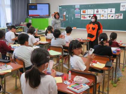 10/23 授業の様子(3) 公開日 2024/10/23 更新日 2024/10/23 できごと 4年生は、外国語活動「ハロウィーンを楽しもう」に学習に取り組んでいました。 ALTのマリア先生が英語で「家の飾り」の作り方を伝えると、しっかりと聞き取って楽しく「家」を作っていました。