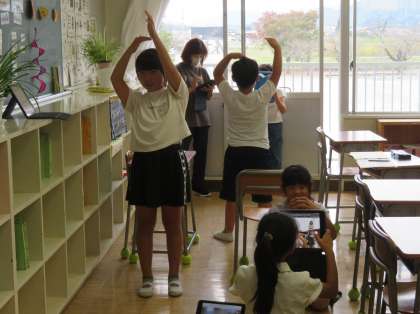 10/24 授業の様子(3) 公開日 2024/10/24 更新日 2024/10/24 できごと 3年生は、外国語活動「体を使ってアルファベットをつくろう」で、体を使って楽しくアルファベットを表現し合いました。