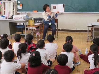 11/8 読み聞かせ 公開日 2024/11/11 更新日 2024/11/11 できごと 11月8日(金)の業前活動は朝読書。 1,2年生は、西ドリームネットボランティアによる読み聞かせでした。 15分間、本の世界に入っていきました。