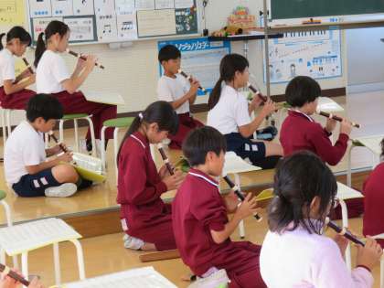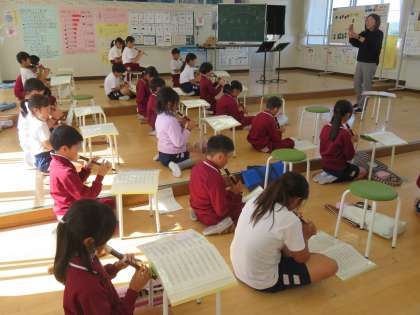 11/8 授業の様子(2) 公開日 2024/11/11 更新日 2024/11/11 できごと 4年生は、音楽でリコーダーの学習に取り組んでいました。 「リメンバー・ミー」の旋律を指を確認しながら演奏していました。