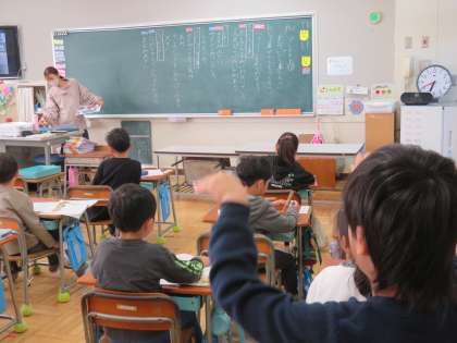 11月11日(月)、1年生は、国語「じどう車くらべ」で自動車図鑑を作るための学習に取り組んでいました。