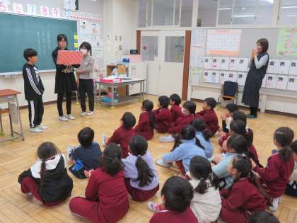 12/13 読み聞かせ 公開日 2024/12/13 更新日 2024/12/13 できごと 12月13日(金)の業前活動は、朝読書でした。 1,2年生は、図書委員による読み聞かせでした。 図書委員は、西ドリームネットボランティアの方から助言をもらいながら、一生懸命に読み聞かせを行いました。 その後、図書委員もボランティアの方の素晴らしい読み聞かせを1,2年生と一緒に聞きました。