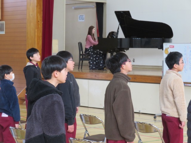 3/12 卒業式練習(2) 公開日 2025/03/18 更新日 2025/03/18 できごと 6年生は、卒業式に向けて校歌を練習しています。本校を卒業した音楽家の萩原由加李さんに伴奏をしていただき、真剣に練習しました。心を込めて美土里小学校の校歌を歌いました。校歌をこの仲間と一緒に歌えるのもあと僅かです。