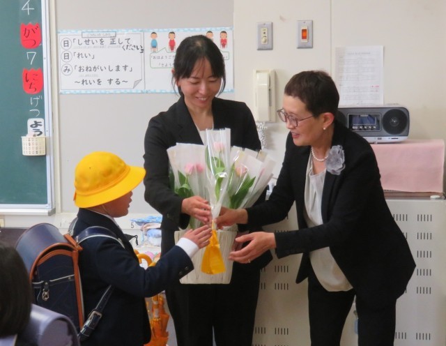 4/7 初めての教室 公開日 2025/04/08 更新日 2025/04/08 できごと 入学式の後で、1年生は初めて教室で担任からお話を聞きました。よい姿勢でしっかり話が聞けていました。 帰りに一人一人にお祝いのチューリップが配られました。これは、本動堂にある「太陽誘電ケミカルテクノロジー本社」様の地域貢献事業である美土里小への古紙提供によるものです。ありがとうございました。