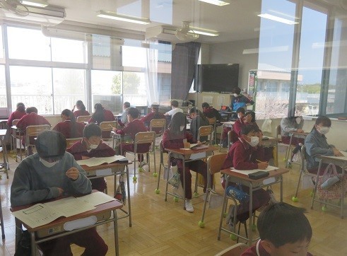 4/17 全国学力・学習状況調査 公開日 2025/04/17 更新日 2025/04/17 できごと 4月17日(木)、6年生は、全国共通の問題で一斉に行われる「全国学力・学習状況調査」に挑戦しています。国語、算数、理科について、国で求められているそれぞれの教科の学力がどのくらい定着しているかを判定するものです。ボリュームのある問題でしたが、6年生は、時間いっぱい集中して取り組んでいました。