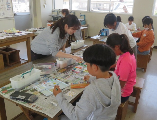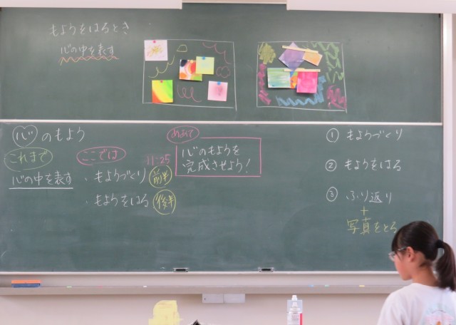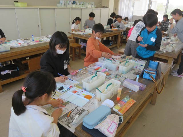4/22 図工の授業 公開日 2025/04/22 更新日 2025/04/22 できごと 5年生は、図工「心のもよう」で、今の自分の気持ちや思いを「色や模様」で表現していました。 友だちの作品を見て、いろいろな工夫に気付いていました。