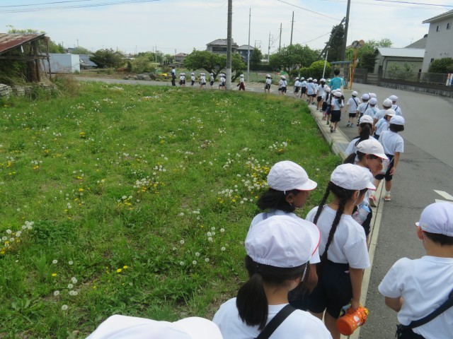 2年生は、町たんけんで、空き地のたんぽぽを見て、「黄色の花と白の綿毛がきれい」「たんぽぽばたけみたい」とつぶやいていました。