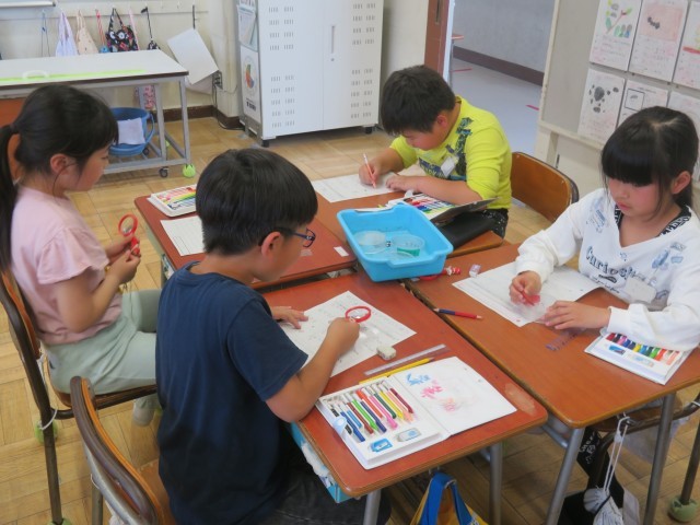 手でさわったり、虫めがねでよく見たり、定規で測ったり、気付いたことを自分の言葉でまとめていました。
