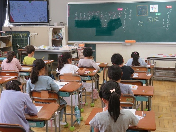 4月28日(月)、1年生は、国語でひらがな「た」のつく言葉を集めました。クラスのお友だちの名前にもたくさん「た」の文字が使われていることが分かりました。
