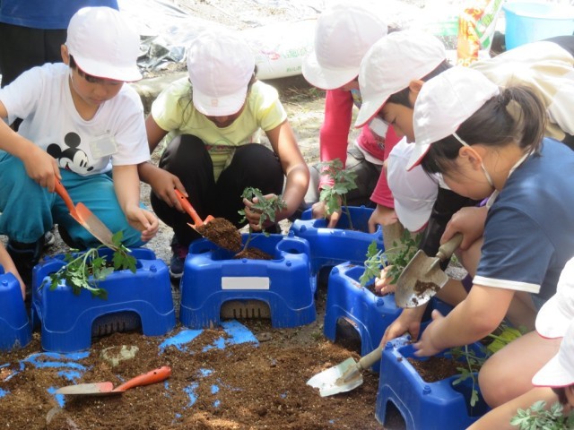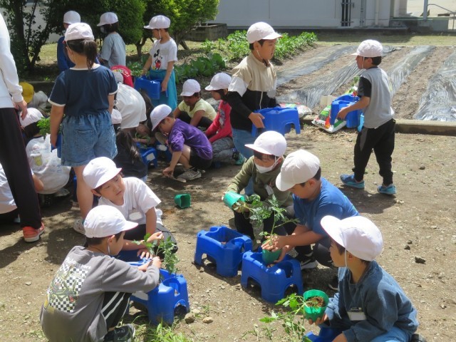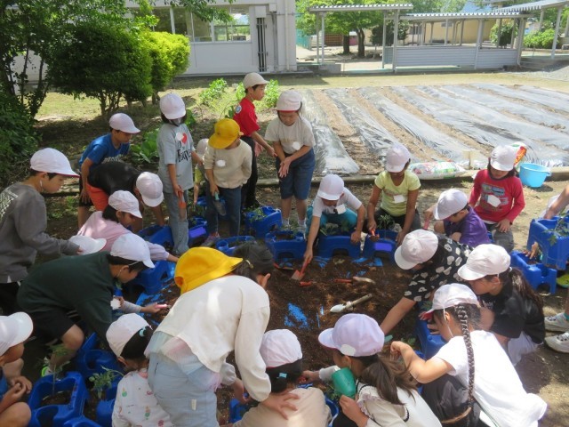 5/7 ミニトマトの苗植え 公開日 2025/05/07 更新日 2025/05/07 できごと 2年生は、生活科で「ミニトマトの苗植え」を行いました。ポットから丁寧に苗を取り出して、植木鉢に植え換えました。 どのように成長していくか、しっかりと観察していきましょう。