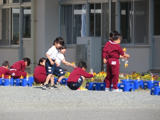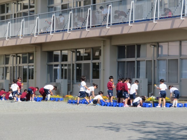1年生は、登校するとすぐに自分が育てている「あさがお」の植木鉢に水をあげています。
