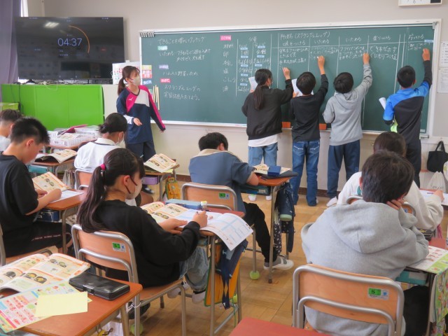 5/16 家庭科の授業 公開日 2025/05/16 更新日 2025/05/16 できごと 6年生は、家庭科「できることを増やしてクッキング」で、「スクランブルエッグ」を調理するための計画をみんなで話し合いました。この計画作りの経験を、このあとの学習「ハム入り野菜炒め」の調理実習につなげていきます。