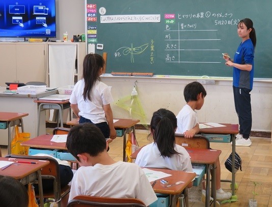 5/20 理科の授業 公開日 2025/05/20 更新日 2025/05/20 できごと 3年生は、理科でひまわりの育ち方を観察しています。どんどん大きくなってきたひまわりの葉や茎の様子を見たり、触ったりして気付いたことをまとめました。